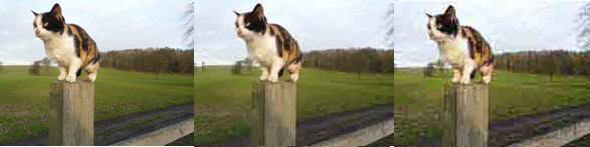 مثلا لذينا صورة كما في المثال اسفله كما ستلاحظ فإن جودة الصورة تتلاشى تدريجيا من اليسار الى اليمين وهذا راجع الى استعمال اسلوب loosy الاخير الذي قام بحذف بعض الألوان ذات الدقة